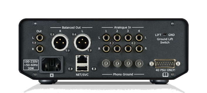 Ein Hauptmerkmal des 40 PPA ist die Möglichkeit, bis zu vier Quellen anzuschließen. So können Sie ganz einfach zwischen Plattenspielern, Tonarmen oder Tonabnehmern wechseln. Jeder Eingang lässt sich zwischen Moving-Magnet- und Moving-Coil-Tonabnehmern umstellen. Dabei lassen sich Verstärkung (in 5-dB-Schritten), Widerstand und Kapazität unabhängig voneinander einstellen.